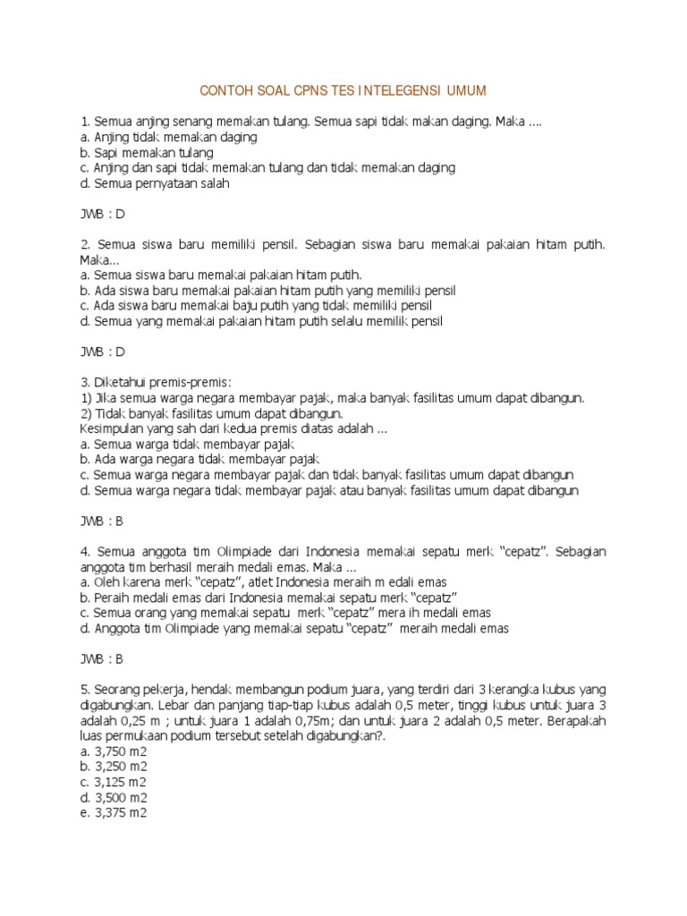 Nah itulah 10 contoh soal tkd cpns tes intelijensi umum sinonim, untuk mendapatkan contoh soal tiu sinonim lainnya, silahkan daftarkan diri anda disini. Kumpulan soal cpns 2020 & 2021, try out cpns, latihan soal cpns, download ebook soal contoh soal tiu cpns 13 dan pembahasannya. Berikut ini kumpulan contoh soal cpns tes intelegensi umum (tiu) 2019/2020. Banyak orang yang takut ketika menghadapi pisikotes dikarenakan memang tes ini merupakan tes yang cukup sulit bagi sebagian orang. Jika ada soal yang masih belum kamu mengerti, silahkan pelajari lagi materinya di aplikasi ini ya. Pengetahuan umum ppcijuly 23rd, 2013 kumpulan soal cpns kumpulan soal soal cpns/casnujian seleksi calon pegawai negeri sipiltahun 2003****mata ujian : 34 berikut ini yang bukan merupakan ciri umum demokrasi pancasila adalah… a. Karena soal yang diujikan setiap tahunnya berbeda. Demikian yang dapat admin bagikan mengenai materi dan contoh soal tes intelegensia umum seleksi cpns 2018. Materi cat cpns ada 3 yaitu, tes wawasan kebangsaan (twk), tes intelegensi umum (tiu). Selesai maka tes selanjutnya adalah tes wawancara. Berikut beberapa contoh soal cpns tes intelegensi umum kemampuan numerik / aritmetik, juga termasuk di dalamnya soal tiu deret angka. 23 yang dimaksud dengan negara sebagai kas negara adalah… a.