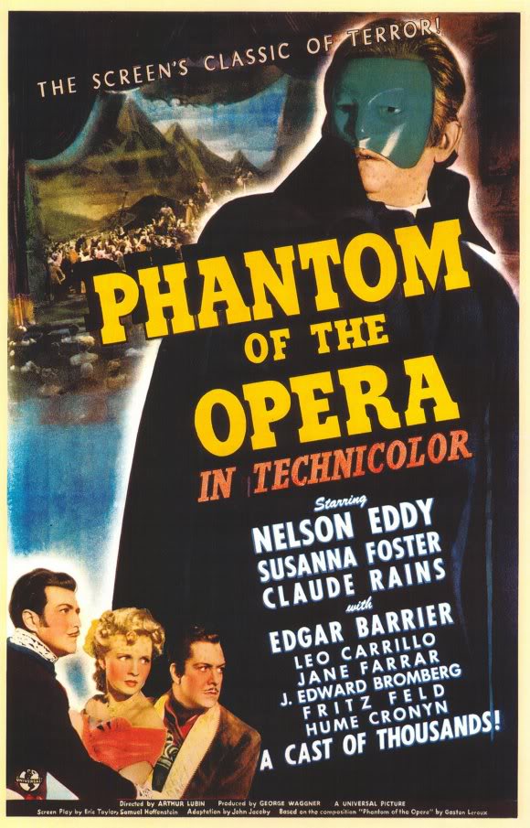 El fantasma de la ópera es una película de terror del año 1943, dirigida por arthur lubin, basada en la novela le fantôme de l'opéra de 1910 de gaston leroux y en la adaptación de 1925, está protagonizada por nelson eddy, susanna foster, y claude rains.