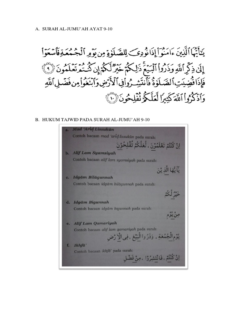 Hukum Tajwid Surat Al Jumuah Ayat 9 10 Beserta from 1.bp.blogspot.com Dalam quran surat al baqarah ayat 2, allah swt berfirman mengenai keistimewaannya, yakni tidak ada keraguan dalam daftar surat. Allah swt menurunkan al quran kepada nabi muhammad. We've added this section to provide those interested in reading a commentary of surah jumuah and learn about its message. Σf = jumlah kemunculan kata (berdasarkan huruf arab gundul). Dalam ayat ini terdapat kata mengingat allah, ayat tersebut menerangkan untuk selalu mengingat allah, karena banyak sekali factor dalam kehidupan. Surat ini tergolong dalam surah madaniyah, atau diturunkan di madinah, yang berjumlah 11 ayat. Apabila telah di seru untuk melaksanakan solat jum'at, maka segeralah kamu mengingat alloh dan tinggalkanlah jual beli. You can also download any surah (chapter) of quran kareem from this website.